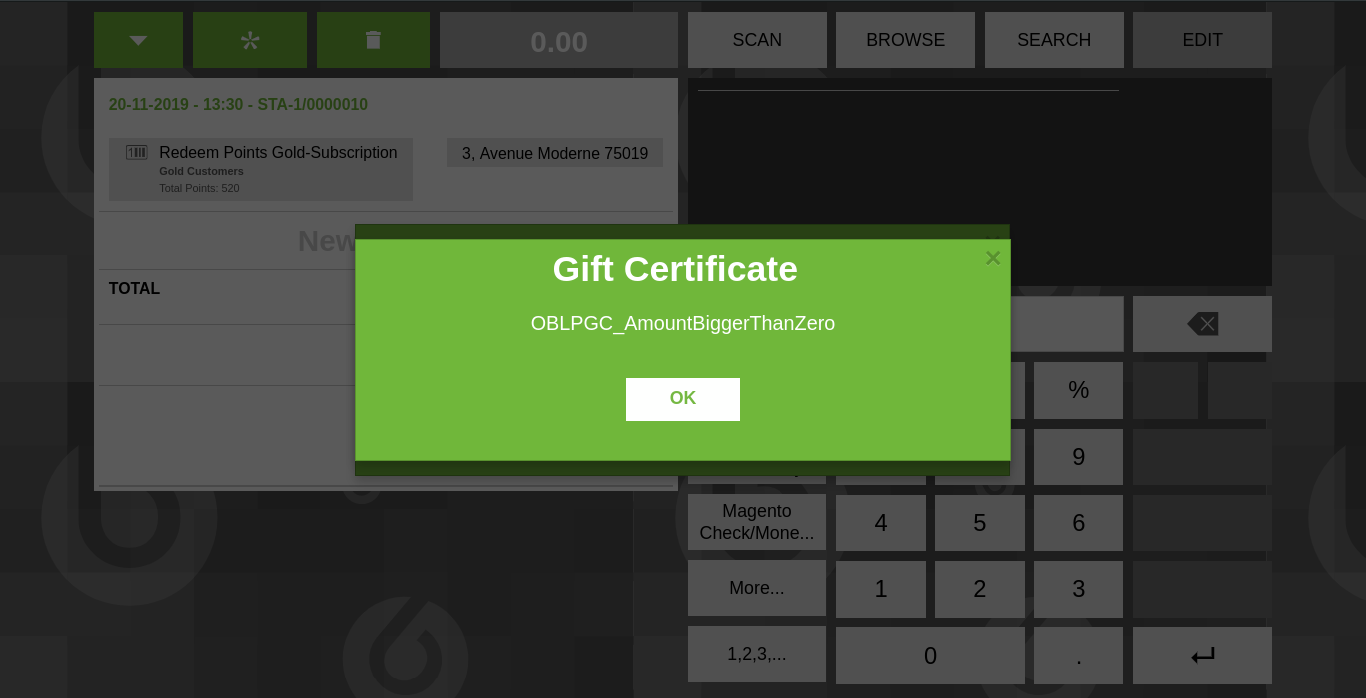 | Description | When attempting to pay an empty ticket with a Loyalty Gift Certificate, a error popup appears to prevent any further action, but the message shown is not at all descriptive. | |||||||||||