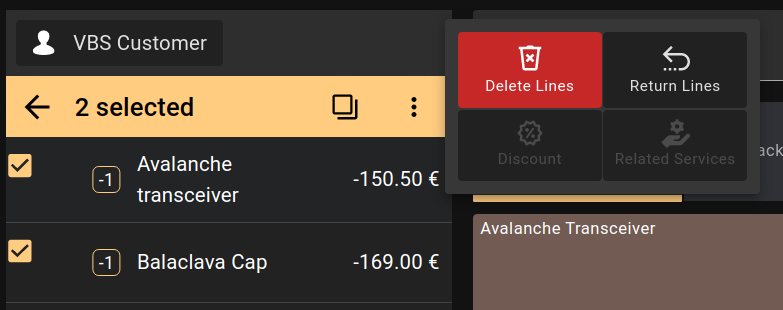 | Steps To Reproduce | 1) Login in POS2 2) Add a couple of lines to the ticket 3) Select both lines 4) Open the Ticket popover by clicking on the three dots and press "Return Lines" 5) Click on the popover again. Note that if we press in the "Return Lines" button now the lines are correctly restored as not return lines, but the label of the button is incorrect, it is still "Return Lines" Note that this behavior is different for the "Return Line" button, currently: - The text is "Return Line" for returning - The text is "Unreturn Line" for making the line a regular line again | |||||||
