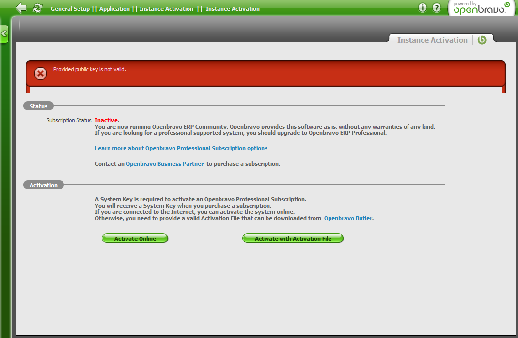 0010305: An invalid Activation File will generate a "Provided public key not valid" error message