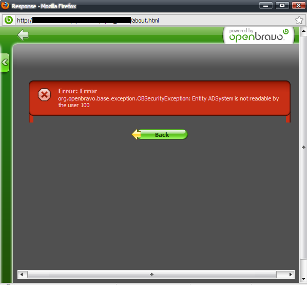 org.openbravo.base.exception.OBSecurityException: Entity ADReference is not readable by the user 100