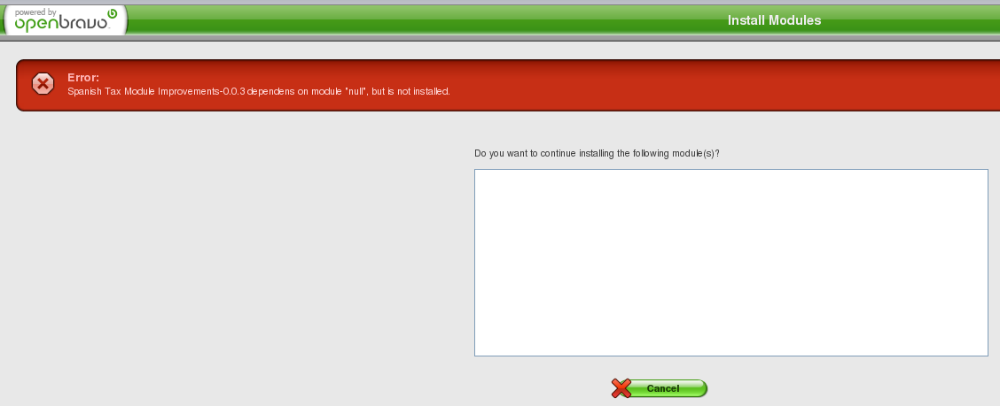 | Steps To Reproduce | 1- As System Administrator go to GS || Application || Module Management, Add modules tab 2- Install a module that depends on a not installed module using the Browse filesystem button. | |||||||