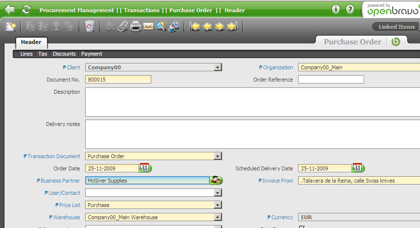 | defect | [Openbravo ERP] 03. Procurement management | minor | always | 2009-12-02 13:04 | 2017-05-29 13:45 | |||||||