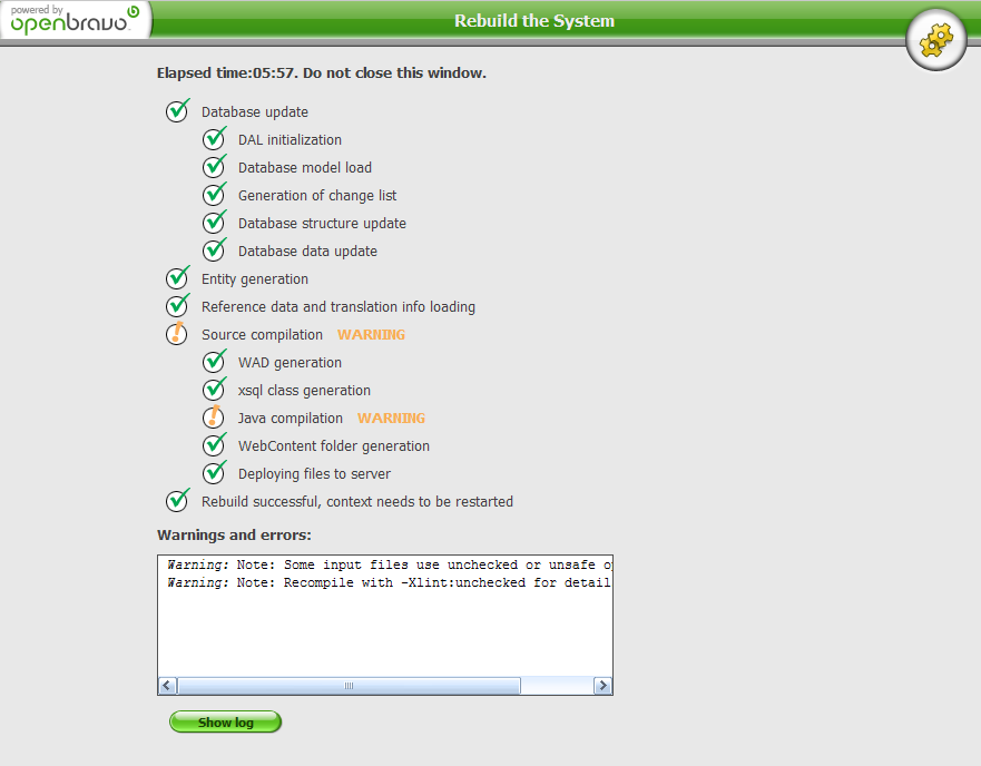 DescriptionAfter finishing a rebuild, the window does not show any message nor button for restart tomcat. See attach.