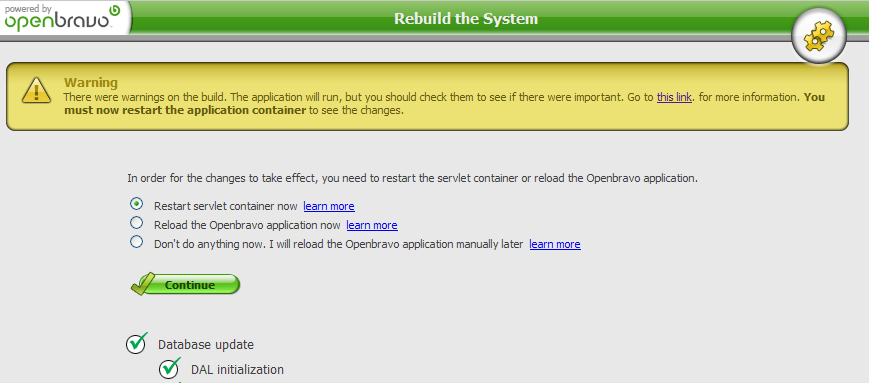 There were warnings on the build. The application will run, but you should check them to see if there were important. Go to this link. for more information. You must now restart the application container to see the changes.