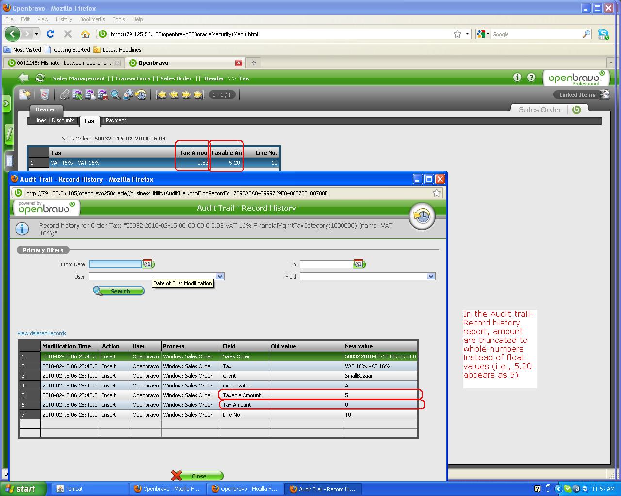 | Summary | 0012263: In the Audit trial - Record History report, amount values are truncated to nearest whole numbers | |||||||
