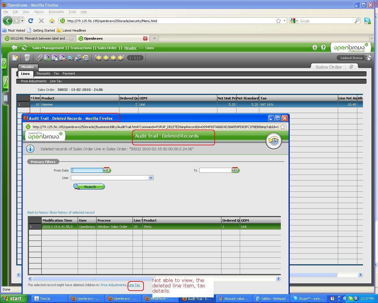 | 2010-02-15 10:06 | sureshbabu | File Added: Not able to view the deleted line item (Line tax) details.JPG | |