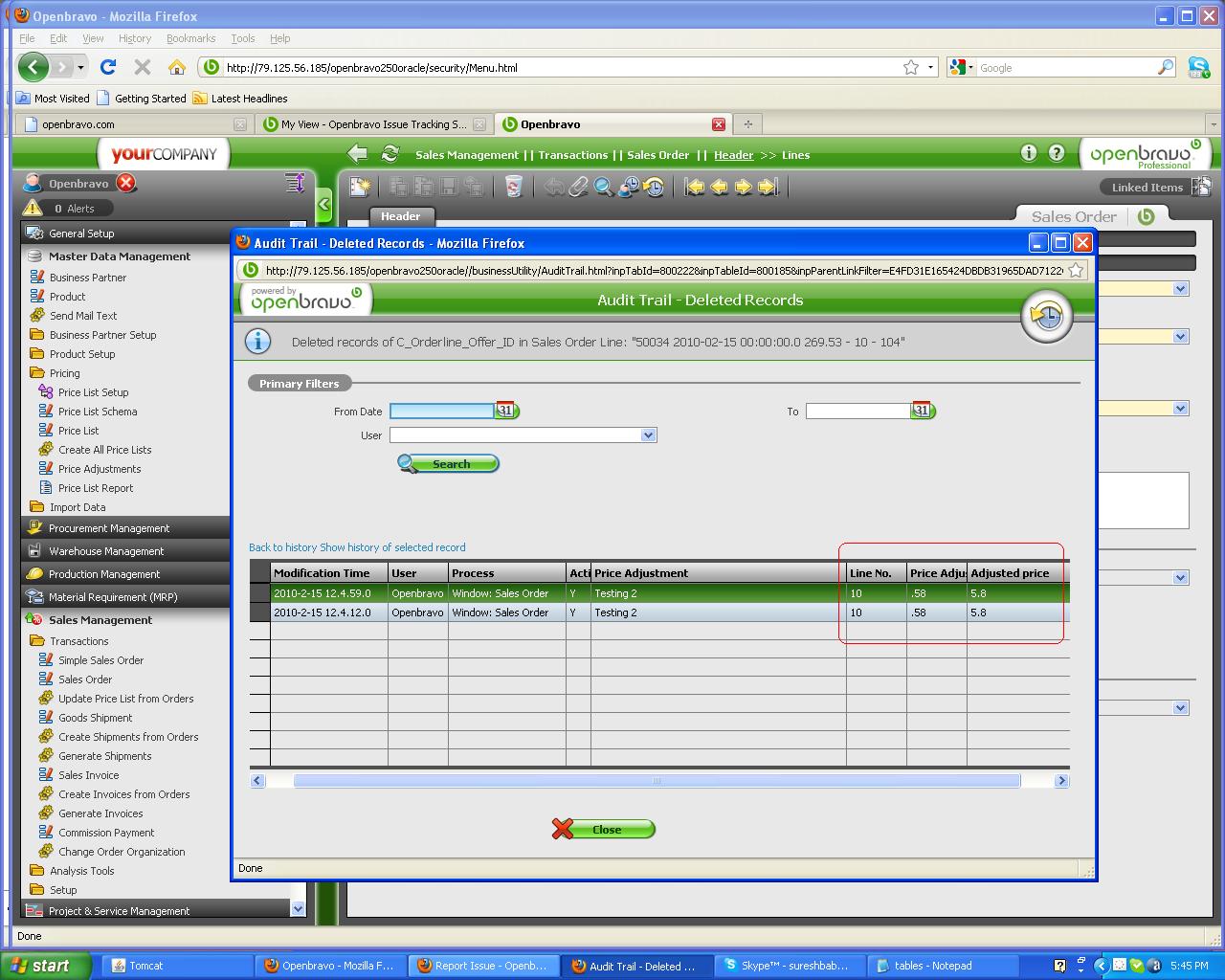 0012276: In the Audit trial - Deleted Records window, dummy row appears while showing Price adjustment details