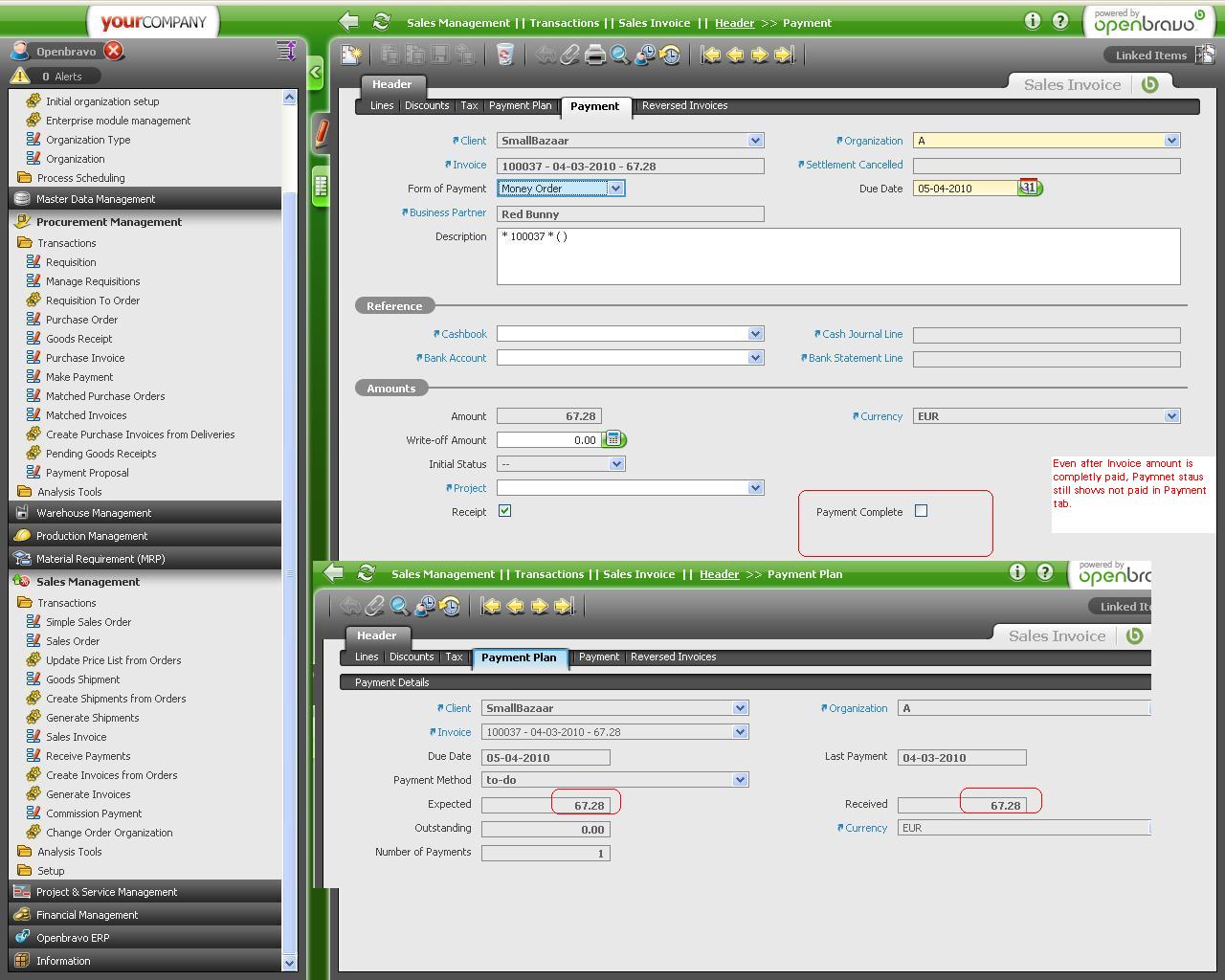 0012556: Payment complete remains uncheked, even after the invoice is completly paid.