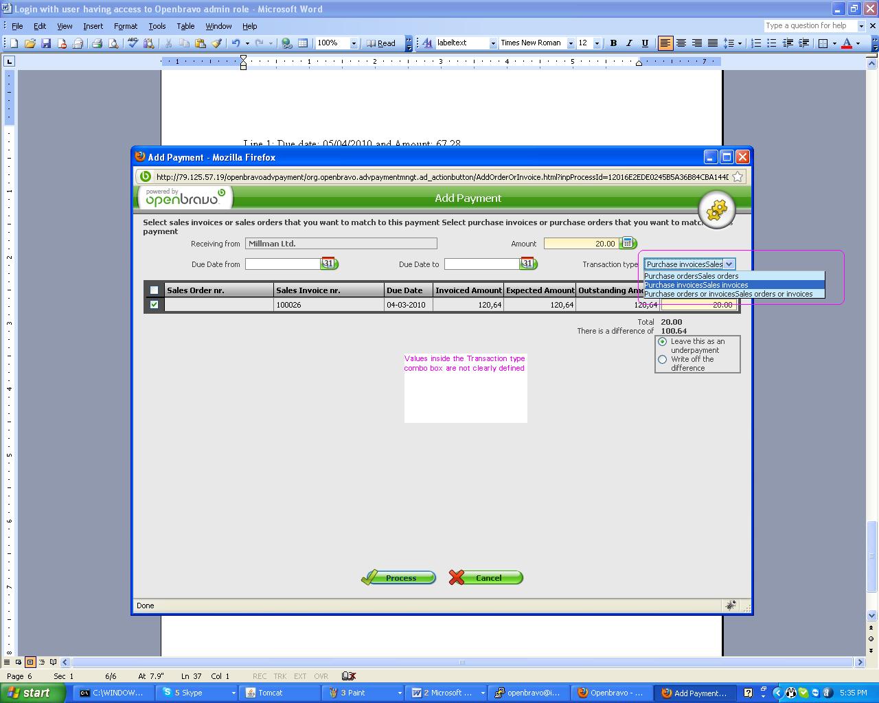 | Description | In Add payment window, values in Transaction type combo are not clearly defined | |||||||