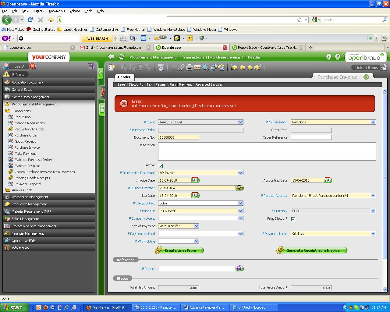 defect[Openbravo ERP] Z. Othersminorhave not tried2010-04-13 07:442010-12-09 16:00