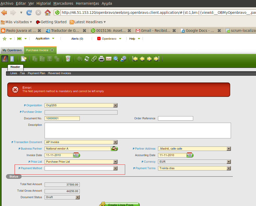 | defect | [Openbravo ERP] 03. Procurement management | major | always | 2010-11-11 15:31 | 2010-12-09 16:07 | |||