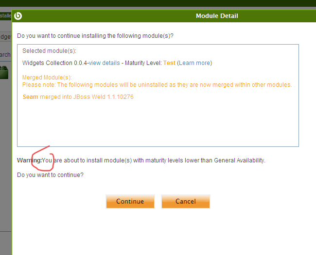 DescriptionWarning:You are about to install module(s) with maturity levels lower than General Availability.