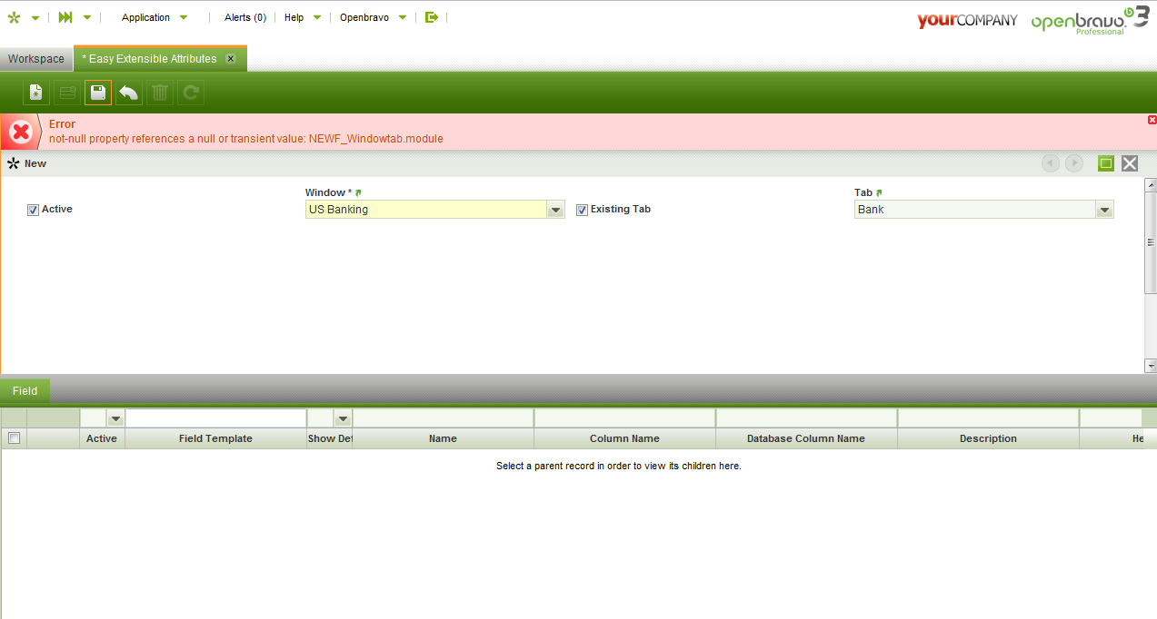 "non-null property references a null or transient value: NEWF_Windowtab.module".