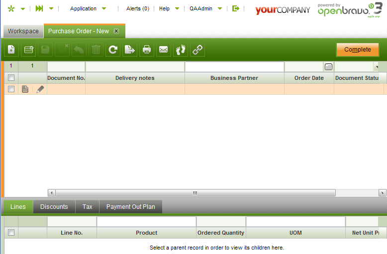 4. Hit the Tab key to move from "Document No" (first focused field) to next field. The edition mode is gone. However, the record was not actually saved. See screenshot.