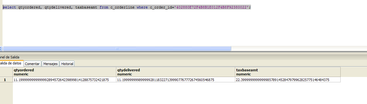 | Description | For example if you type in the qty of the sales order line 11.2 in the db is stored a different qty making later on everything related with the sales order fail Example: You enter 11.2 in ERP In the DB you have:11.199999999999999289457264239899814128875732421875 Please see attach DB.png Notice as well that the column taxbaseamt is calculated and has the same problem. This makes even worse the issue But the consequences are really bad if you execute the steps. Look at the following screenshot: DElivered.png : Although they have been delivered it says still not delivered since you can pick them salesorderline.png: You can see it says 11,2 and 11,2 but still you can delivered Because of this you cannot even select it in the "create lines from" in sales invoice header | |||||||
