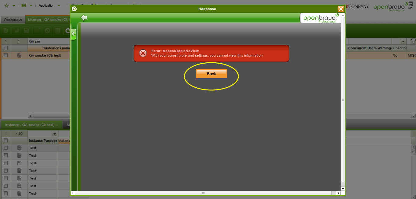 DescriptionWhen users attempt to access a window based on a table to which they do not have access, a window displaying an error message is displayed notifying them that they do not have access to the table.
