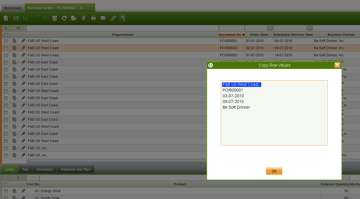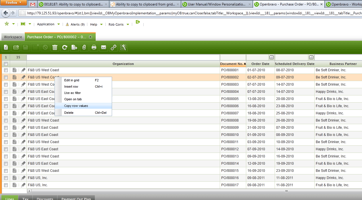 | Description | The Openbravo 3 grid is great and it is a fantastic productivity tool. There is one thing missing: it is not possible to copy to clipboard information in the grid. Imagine that you are reviewing a list of invoices and you want to send an email to a colleague about one of them. You need to reference the invoice number. The natural thing to do would be to highlight it with the cursor, copy it and past it in your message. However, the grid does not allow you to highlight its content so you cannot copy it. The only option is to open the record in form view and copy the document number. Now, imagine that you also want to copy the document status. In form view, you cannot highlight the content of the information bar (which supposedly is the most important information on the screen and the thing that you are most likely to want to reference) so you cannot do it. | |||||||