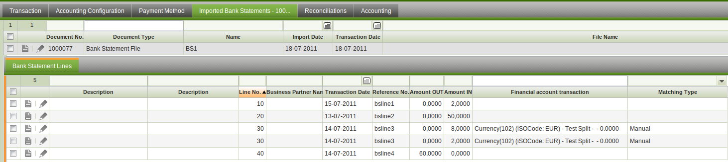 Steps To ReproduceTo reproduce the bug just split a bank statement line imported in two or more different amounts.