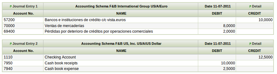 DescriptionThe tab accounting in the financial account does no summarize by bank accounting account when there is an split into the bank statement line. As you can check in the picture attached the bank accounting account (57200005) is showed in two lines instead of just one as the bank statement line imported through “cuaderno 43”.