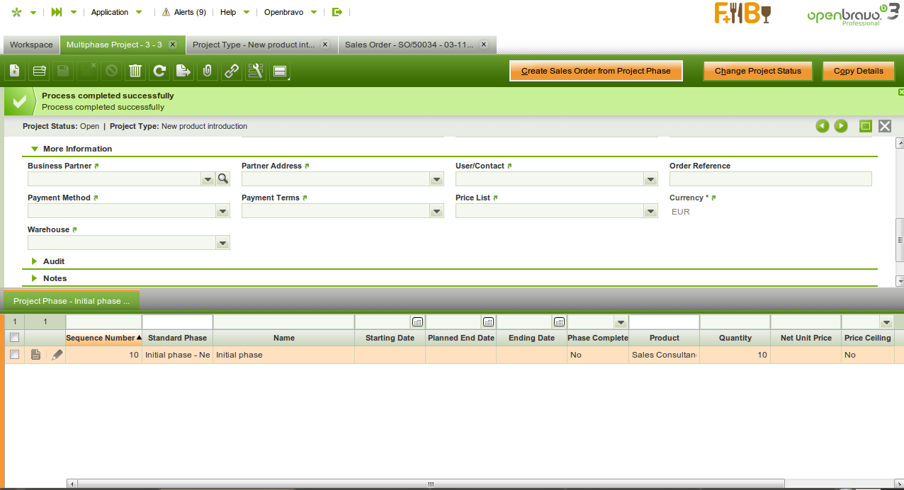 | Steps To Reproduce | What i did for example is enter a new multiphase project (name test for example) and save it. Enter a phase and a task and change status to order. Enter a second multiphase project (test2 for example). Then I used the copy details button to copy over information from a previously entered multiphase project. The information appeared, but the tab 'Project Task' was no longer visible. | |||||||