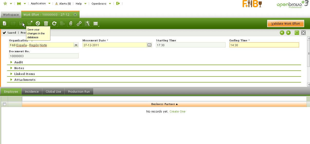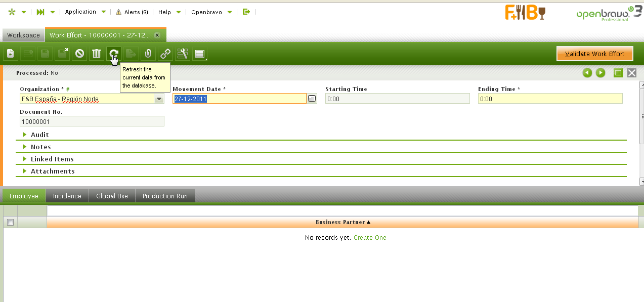 DescriptionRefreshing Work Effort Header window changes values in the Starting Time & Ending Time columns/fields.