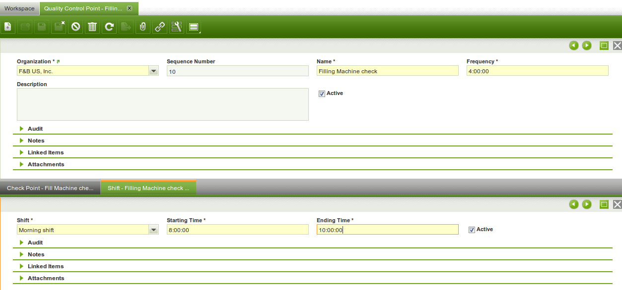 Also, the time doesn't function well in the Quality Control Point: in the form view the time is different from the grid view (by 1 hour) - see screenshots.