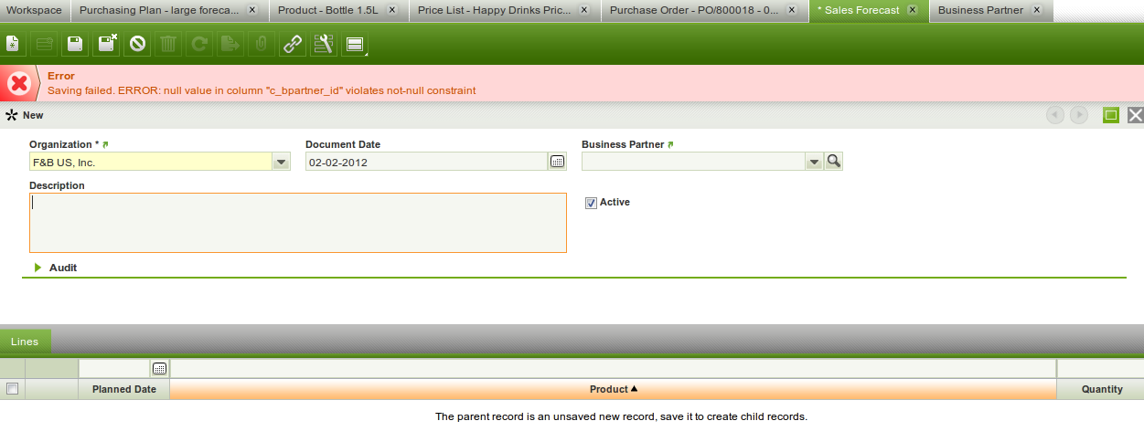 | Description | In Sales Forecast the Business Partner field is white, yet you can not save the record without a Business Partner. | ||||||||||