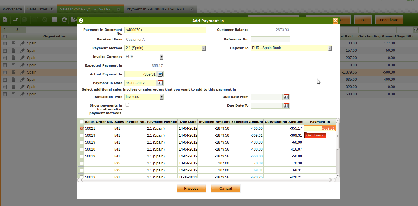 0020041: It does not balance as intended the amount when making a Payment to an Invoice