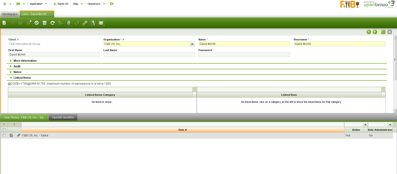 To reproduce the issue with the new demo data, follow the steps to reproduce but select the user "F&BAdmin" instead of "David McHill"
