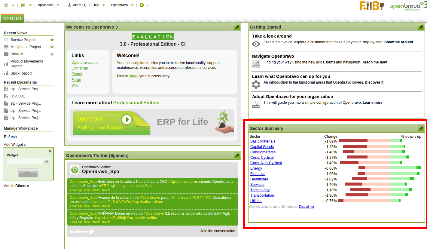 Test Plan: Go to workspace and add the widget Sector Summary. Notice that the widget is showing correctly. |