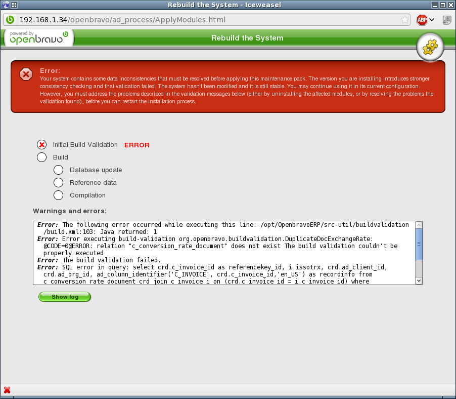 DescriptionIf you try to upgrade from 2.50 to 3.0MP12 a build validation fails because the c_conversion_rate_document table does not exist yet.