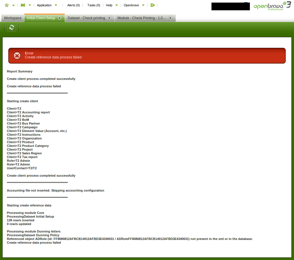 | Description | Initial Client Setup fails when users try to install the data set from the Dunning module | |||||||