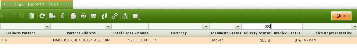 | Summary | 0023477: Sales Order with delivery status 300% | |||||||||||