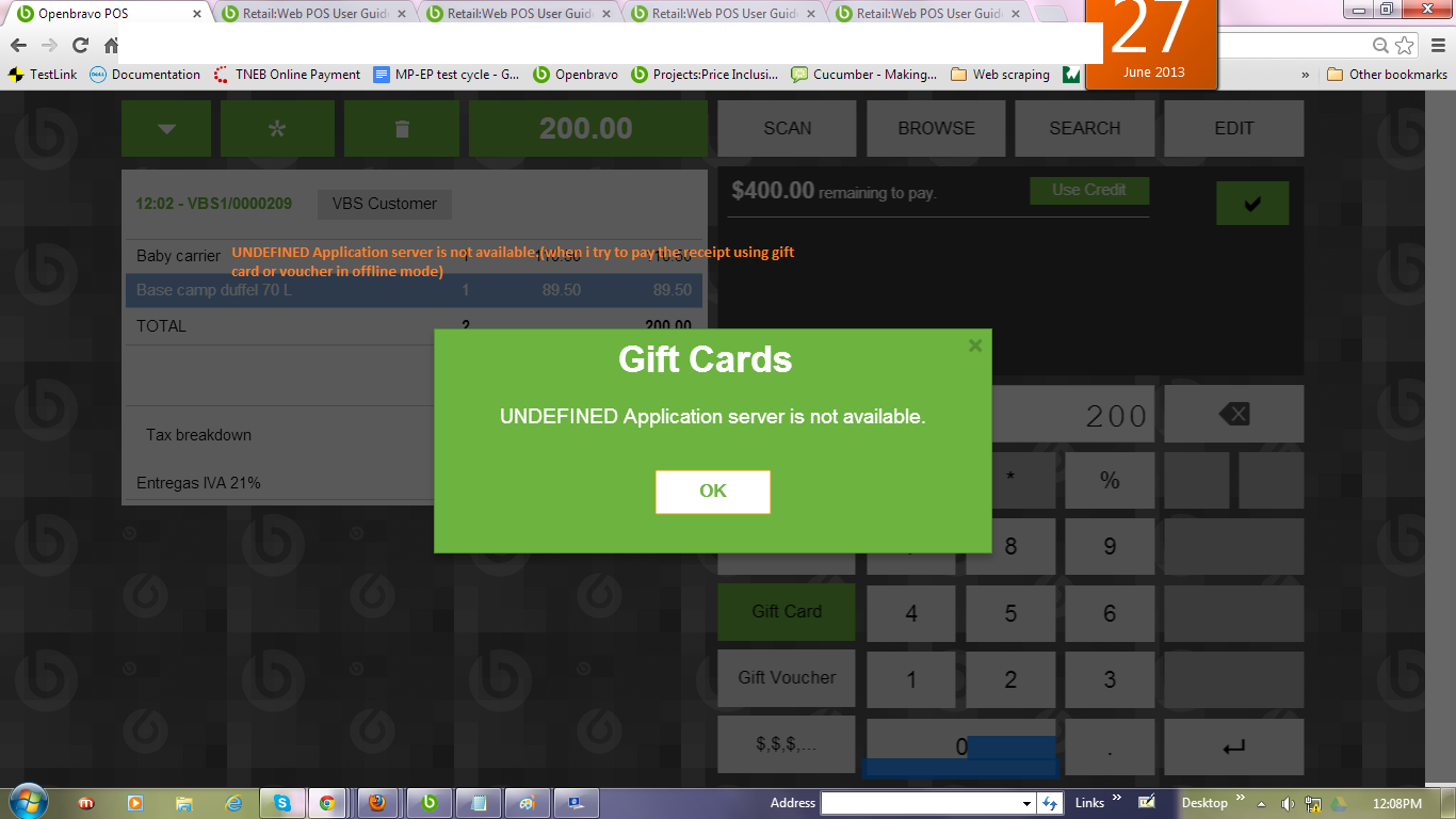 | 2013-06-27 08:44 | sureshbabu | File Added: UNDEFINED Application server is not available.(when i try to pay the receipt using gift card or voucher in offline mode).png | |