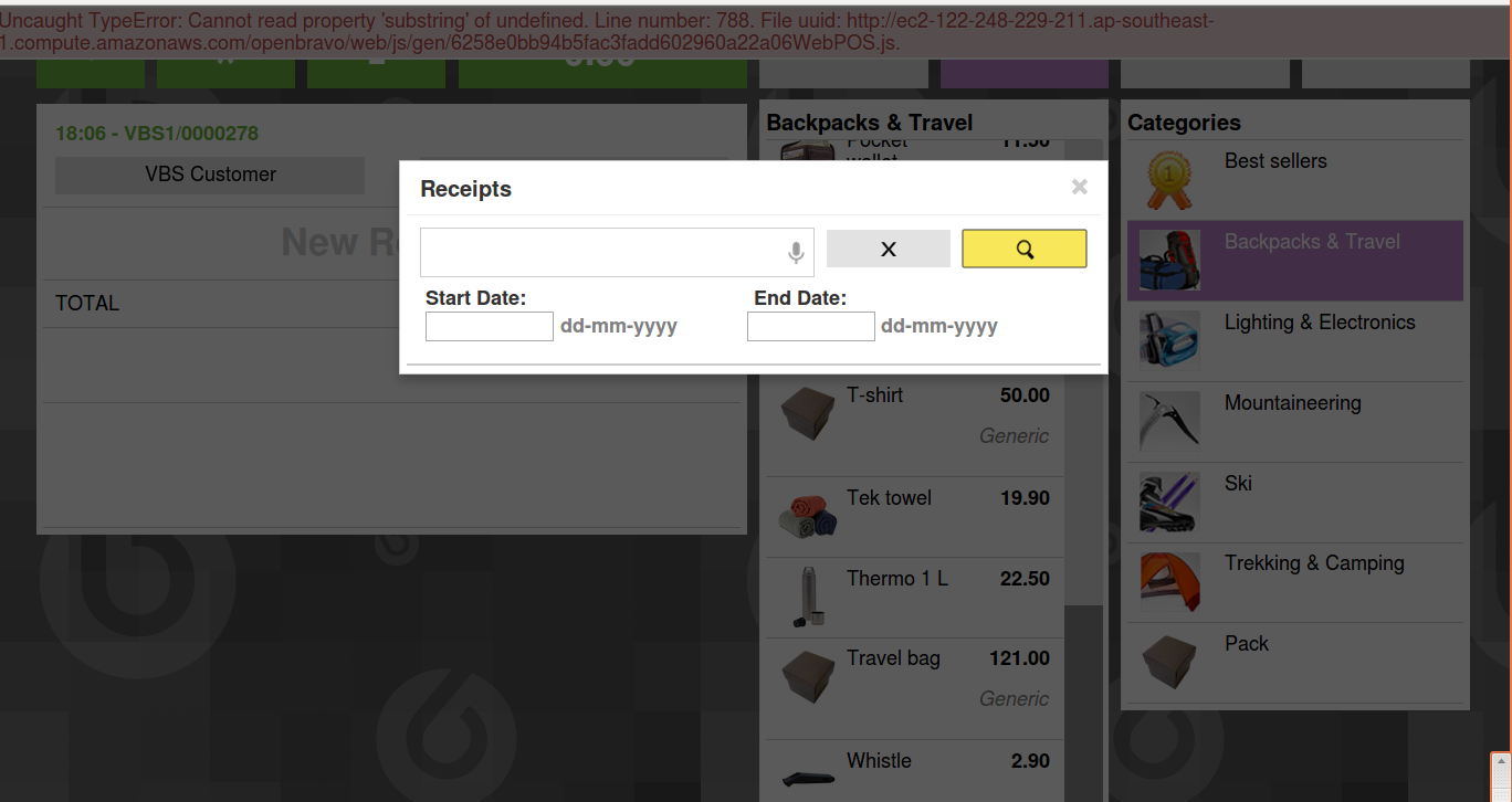 | Steps To Reproduce | 1) Log into web pos and force losing the internet 2) Go to the menu option "Verified returns" 3) See the red error attached | |||||||||||