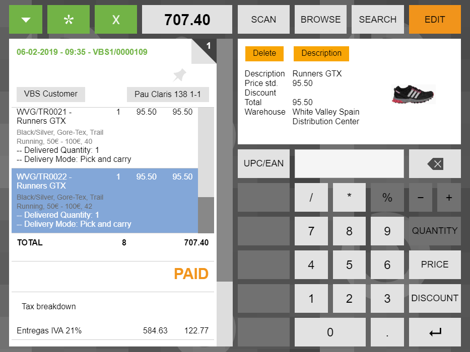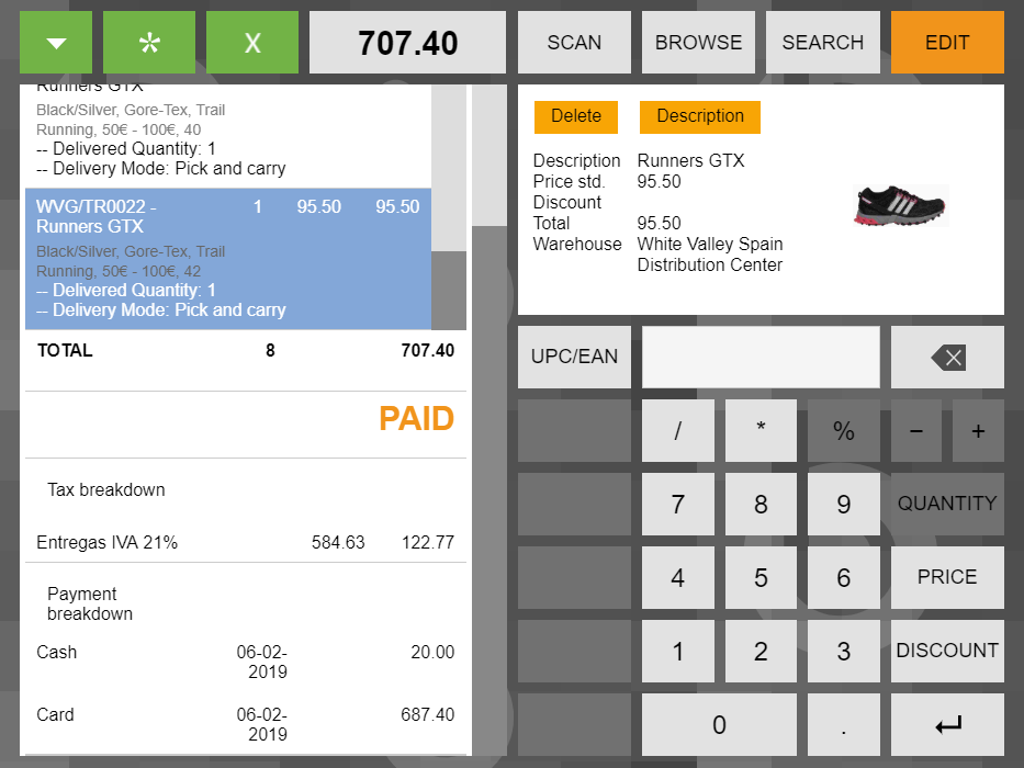 In case any of these areas overflows (maximum height reached in the "total + taxes" area, or many products displayed in the top area), a scrollbar affecting only the overflowed area is shown.