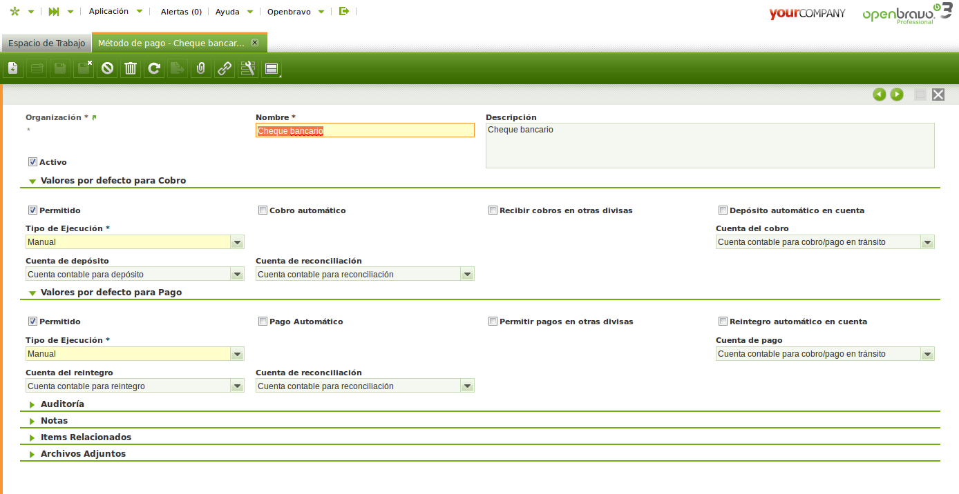 | Proposed Solution | All payment methods should have a proper description and no default posting configuration. | |||||||||||