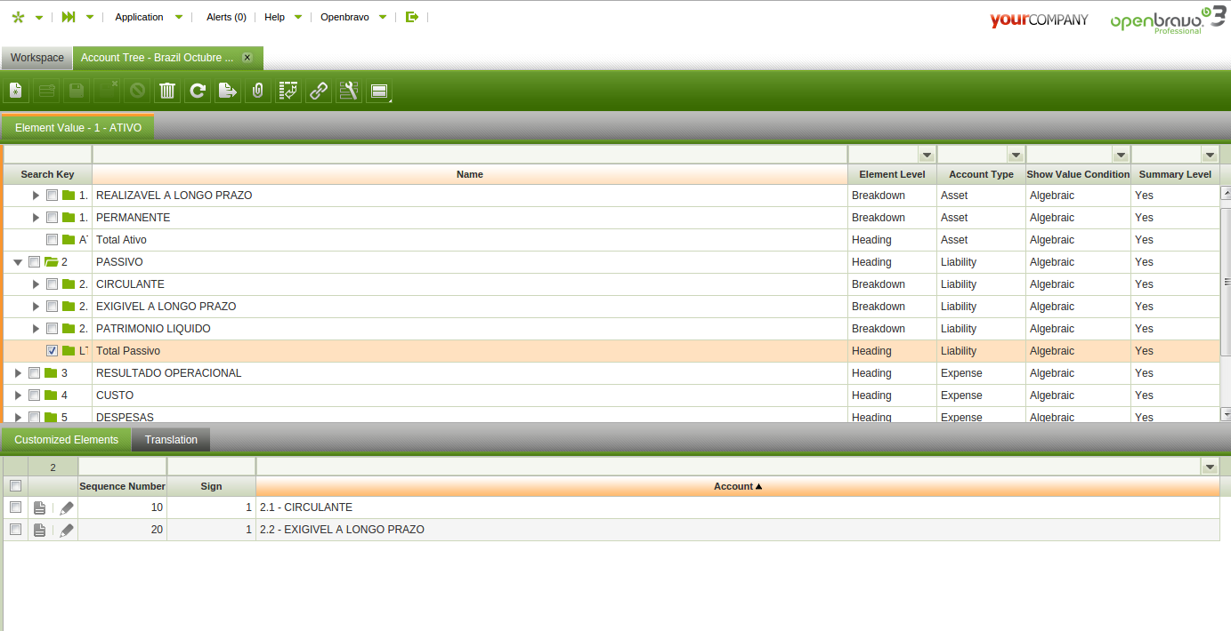 Proposed SolutionBrazil Chart of Accounts should include some nodes that summarizes "Assets" and "Liabilities & Owners Equity" therefore those nodes can be selected in the "Balance Sheet and P&L setup" window.
