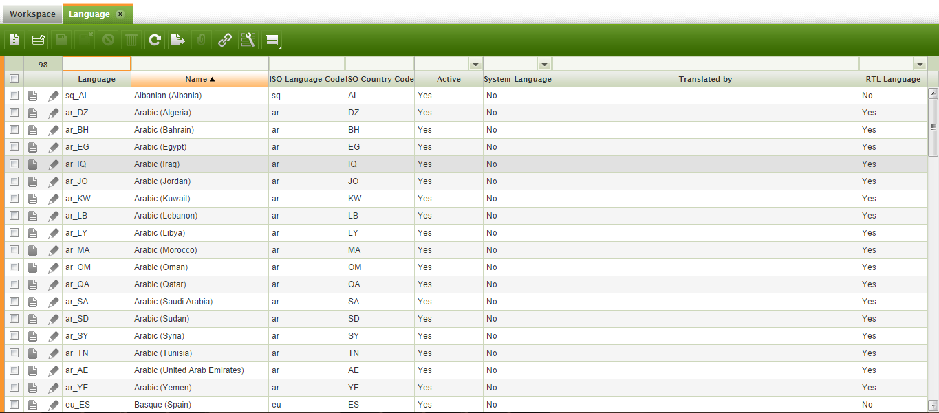 | Proposed Solution | The list of languages is a reference to the Language window which could be accessed when logged in as System Administrator. Differently from other System Administrator windows, such as Windows, Tabs and Fields, there are no "translation" sub-tabs. It should be a translation tab in the list of languages so that a localizer can translate the list of languages in a given language. | |||||||||||