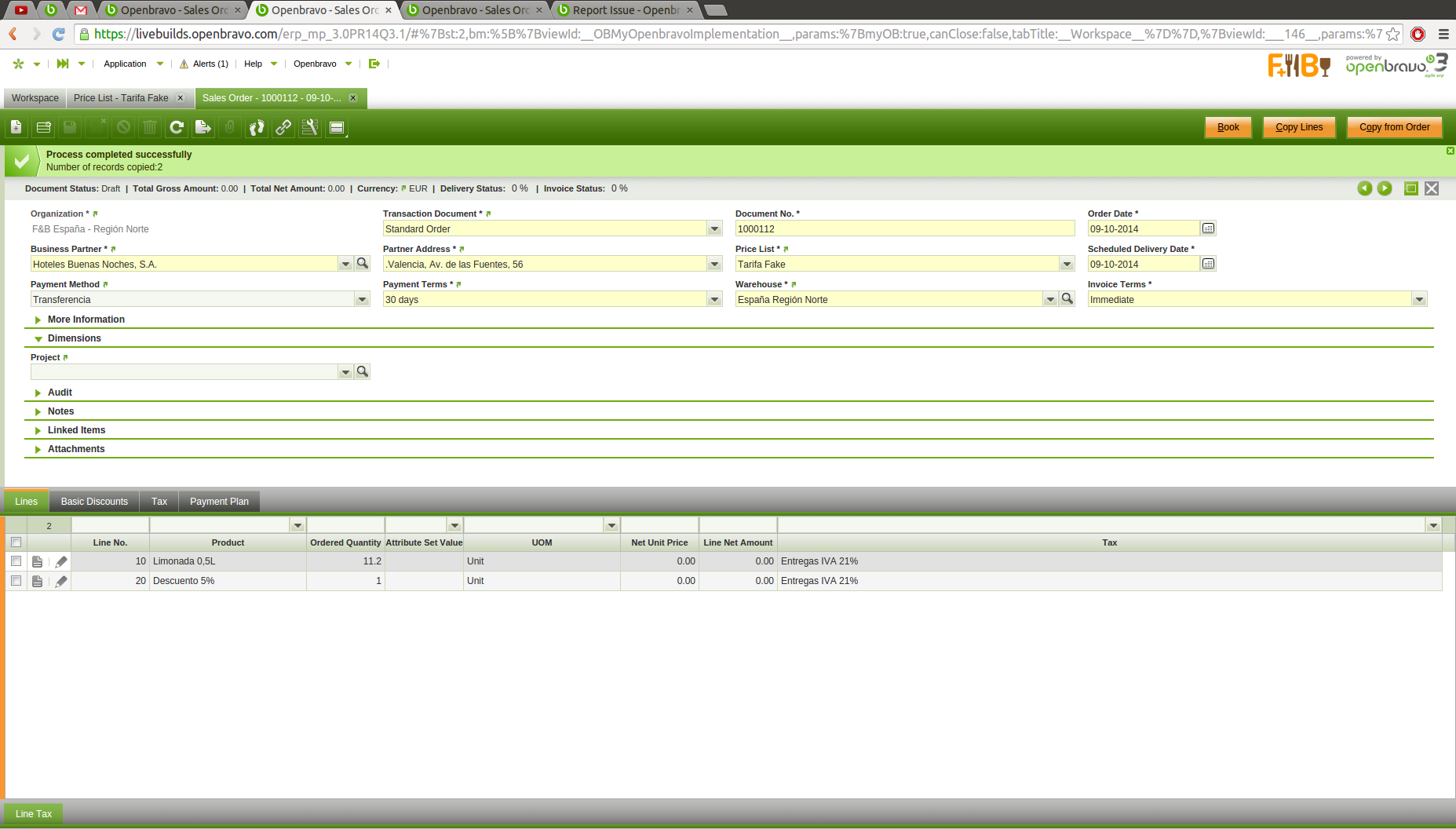 | Summary | 0027818: With "Copy from order" in "Sales Order", it is possible to introduce lines from products that are not allowed in you Price List | |||||||||||