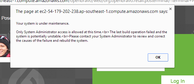 | Steps To Reproduce | 1. Get into the backend and rebuild the system (i.e. install a new module) 2. While the system is rebuilding, log in the webPOS 3. An alert message is shown (see attached image) | |||||||||||