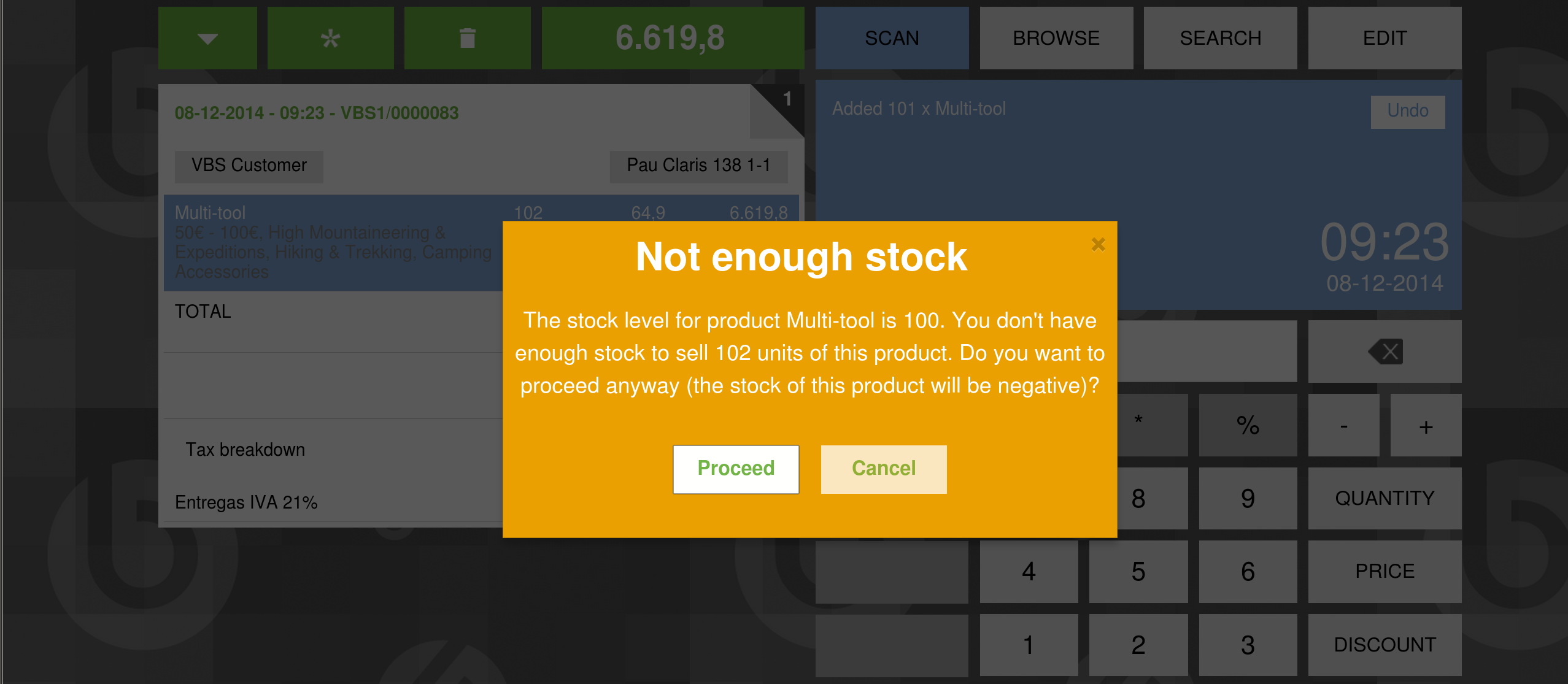 DescriptionIt's possible to convert a quotation (with several lines) into a ticket if there is no stock although the pop up appears (while online). If the ticket only has 1 line, it works