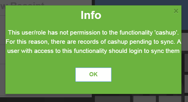 | Description | When I first get into the WebPOS, a message about pending cashups is shown. This does not happen on previous releases, and the message has little sense since it is the first login, so I should have nothing to synchronise. | |||||||