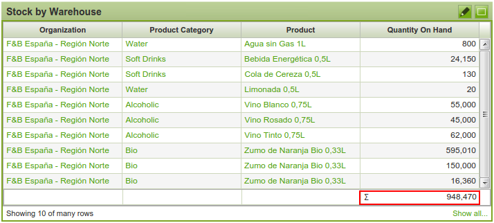 Reported case is not standard: quantiy on hand column is already a sum in the query. The SQL to get the total should look like select sum(qtyOnHand) from (select sum(qtyOnHand) from ...) which is not feasible with HQL (subqueries are not supported in the from clause). Even this concrete case worked before fix for 0026992 when all records were in client, it didn't when other case. Please provide actual customer's widget definition to understand the real case and decide on a possible solution. |