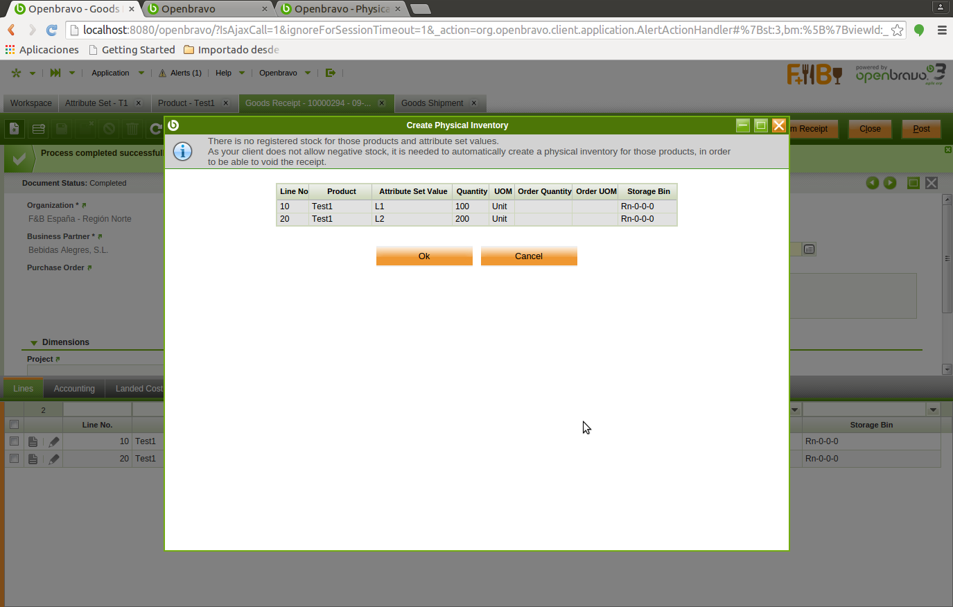 | Steps To Reproduce | As group admin role: Create two Attribute Sets. Check the Lot in both of them Check the Require At Least One Value to one of them Create two products and assign one attribute set to each one (mandatory and non mandatory) Create a Goods Receipt, add the two products, assign an attribute set value to both of them and complete Create a Goods Shipment and add the two products in order to leave the stock to 0 Create a Physical Inventory header and launch the Create Inventory Count Process Check a line is created for the product with the non mandatory attribute set with the value assigned in the goods receipt line You cannot manually add that line to the physical inventory | |||||||
