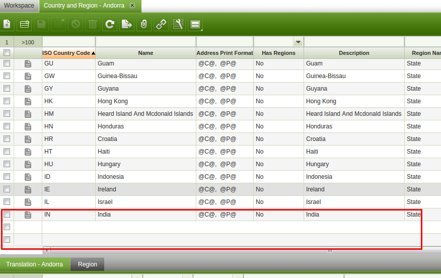 | Steps To Reproduce | 1. Open Country and Region window (check grid is sorted by ISO code) 2. Select first country in the list (Andorra) 3. Scroll down until next page is requested 4. Click the refresh button. Grid is scrolled up again to display selected country -> OK 5. Scroll down till last record in the current page (India), there are 2 problems: -> grid shows to empty lines after India -> there is no extra request to continue loading missing records | |||||||