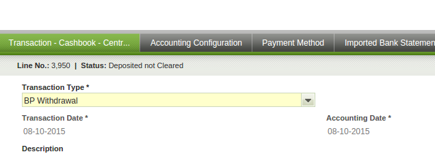 5-There you can watch status is "Deposited not Cleared" instead of "Withdrawn not cleared"
