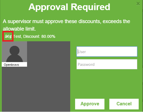 | Steps To Reproduce | Configure discount matrix module. http://wiki.openbravo.com/wiki/Modules:Range_Discount_Approval_Per_Role/User_Guide [^] See the approval | |||||||