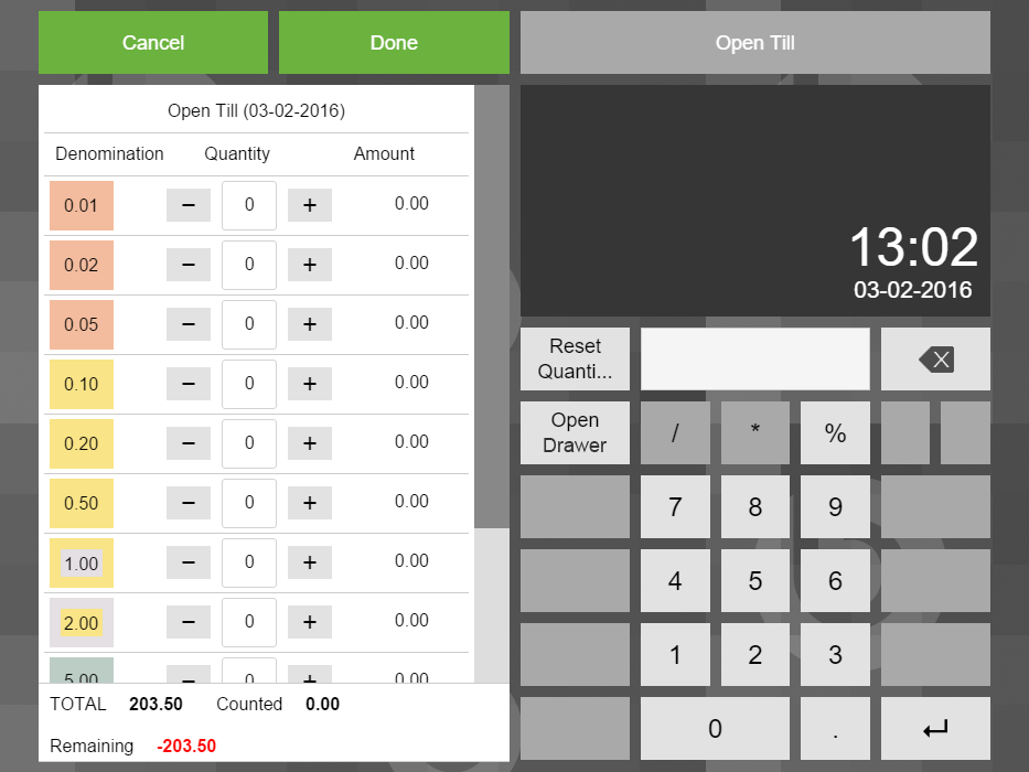 | Summary | 0032106: [UX] 'Cash Up' and 'Open Till' visual defects | |||||||||||