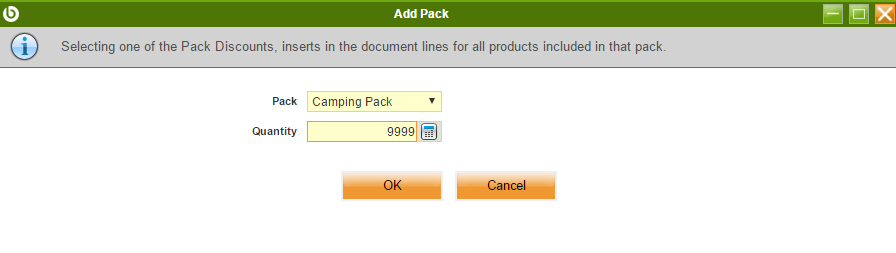 | Description | There is a button labelled "Add Pack" in the backend's Sales Order window. Using it opens a pop up, that has a field to introduce the number of packs. While this field is limited to four digits (maximum of 9999) there is not limit when using the keypad, generating a Java.lang exception. See steps. | |||||||||||